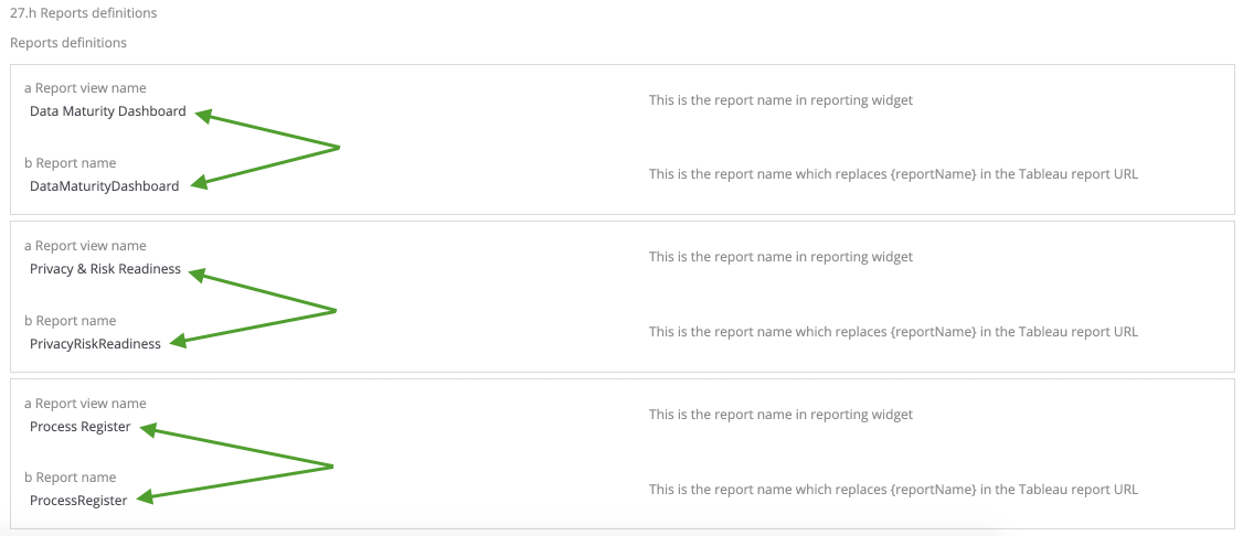 Tip Use the name as it appears in the URL of the Tableau report, for example "DataMaturityDashboard".