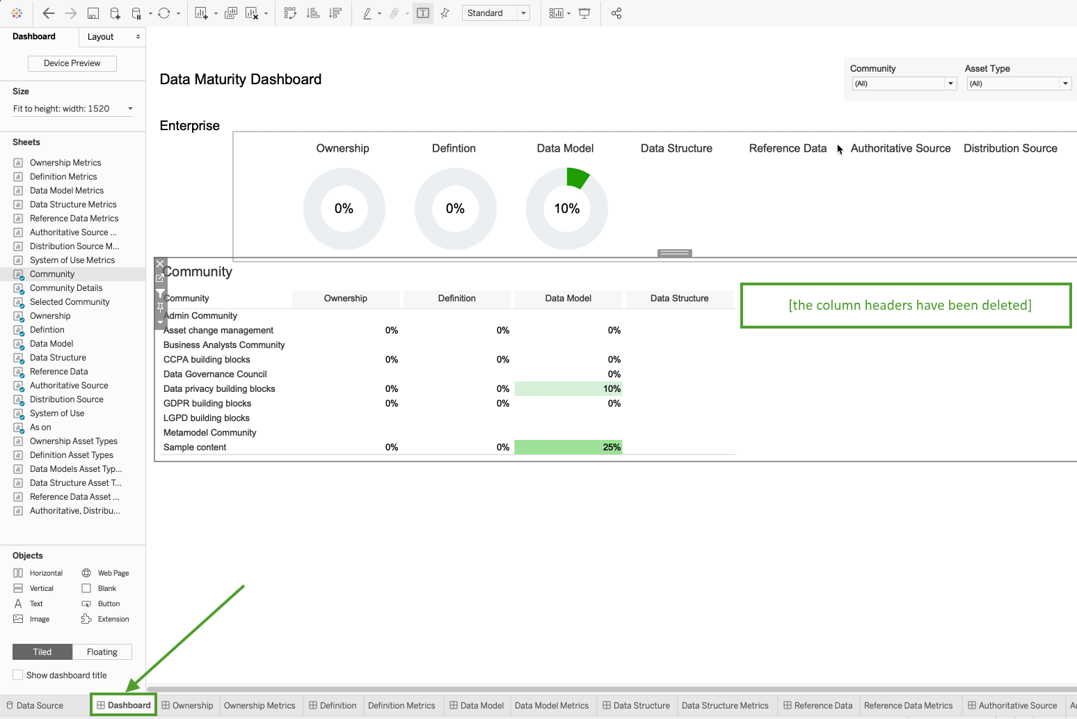 A well configured Data Maturity report will look something like the following image.