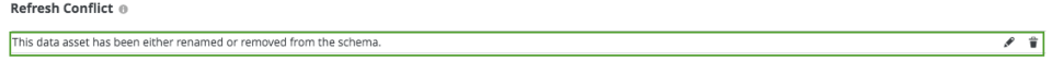 The table asset page appears. - In the Refresh Conflict section, hover over the refresh conflict message and click