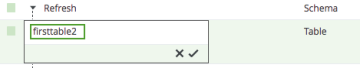to the right of the table name. - Change the name to the new ingested table name, in this example, firsttable2, and click