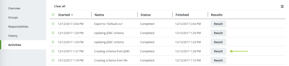 The data source is registered and the data is automatically ingested. The ingestion of data is executed in a job. You can see this job in the list of activities.