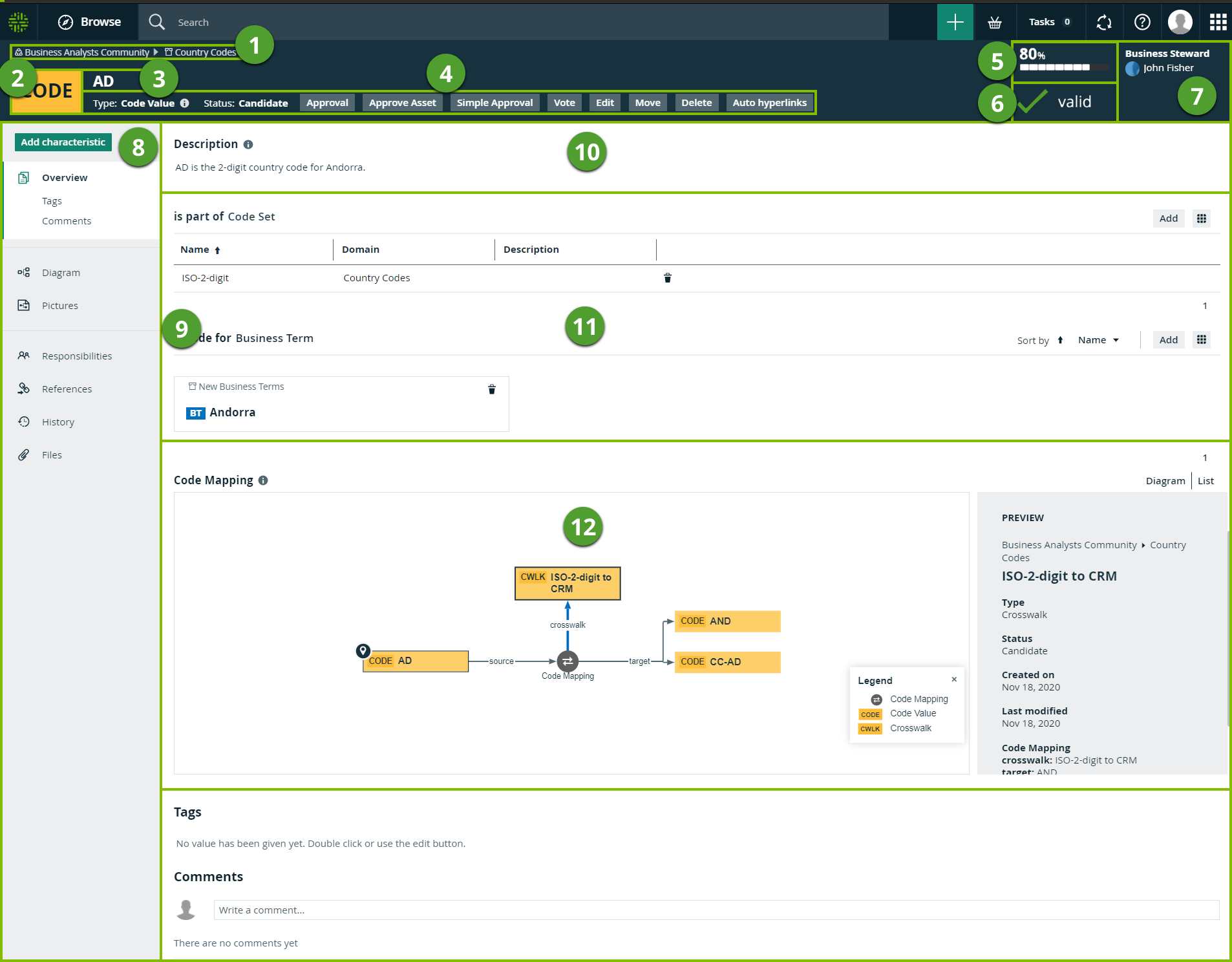The articulation score of the asset. Note If there are no articulation score rules assigned to the asset, the asset page does not show an articulation score. |