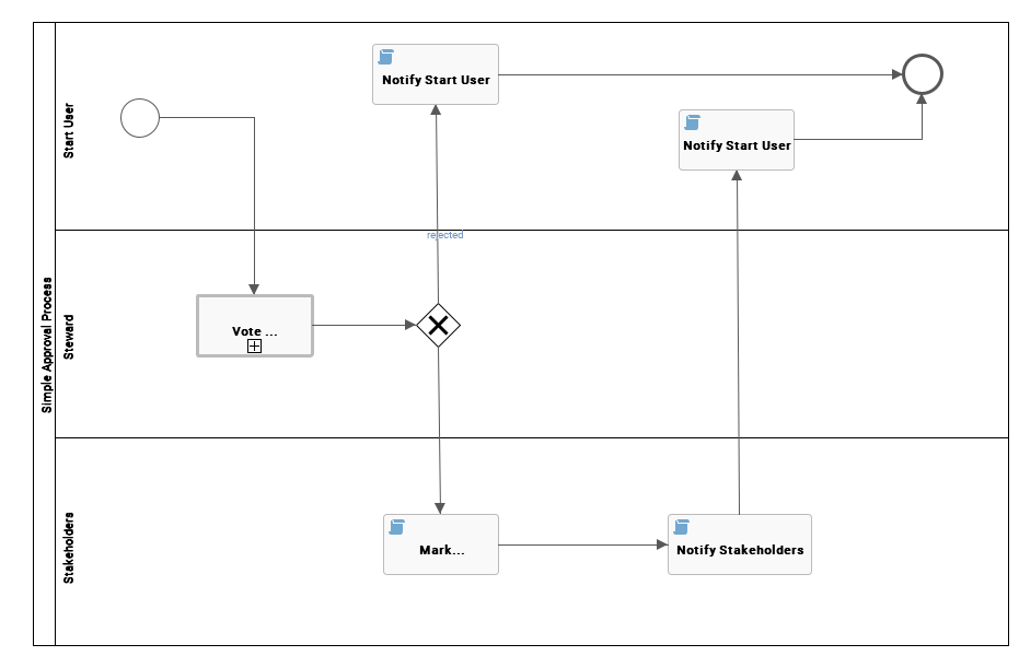 The Voting Sub-Process is a workflow that can be called by other workflows when users need to vote. It is used within other packaged workflows such as the Approval Process, the Simple Approval or the Issue Management workflow. You can use this sub-process in new custom workflows. The result is a true or false boolean that is provided to the parent workflow. |