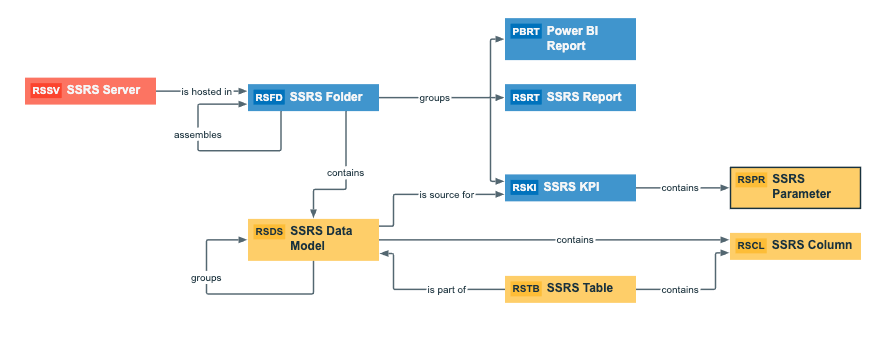 The following image shows an example structure after SQL Server Reporting Services and Power BI Report Server ingestion.
