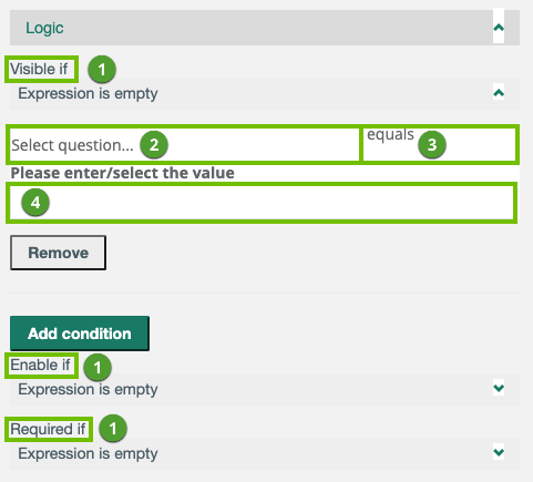 Note This logic condition overrides the Is required? setting in the General section in Properties. |
