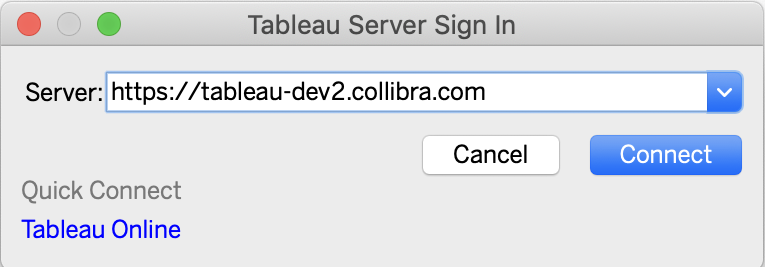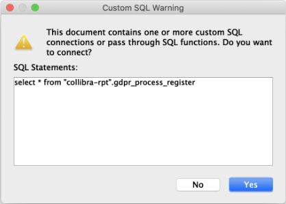 - Click Sign in.Note If you receive an error at this point, it could be that the data source "collibra_rpt" is not configured. In this case, you should edit the connection details to point to the data source you've created.