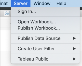 or File > Save, to save the database extract. - In the main menu, click Server and then click Sign In.