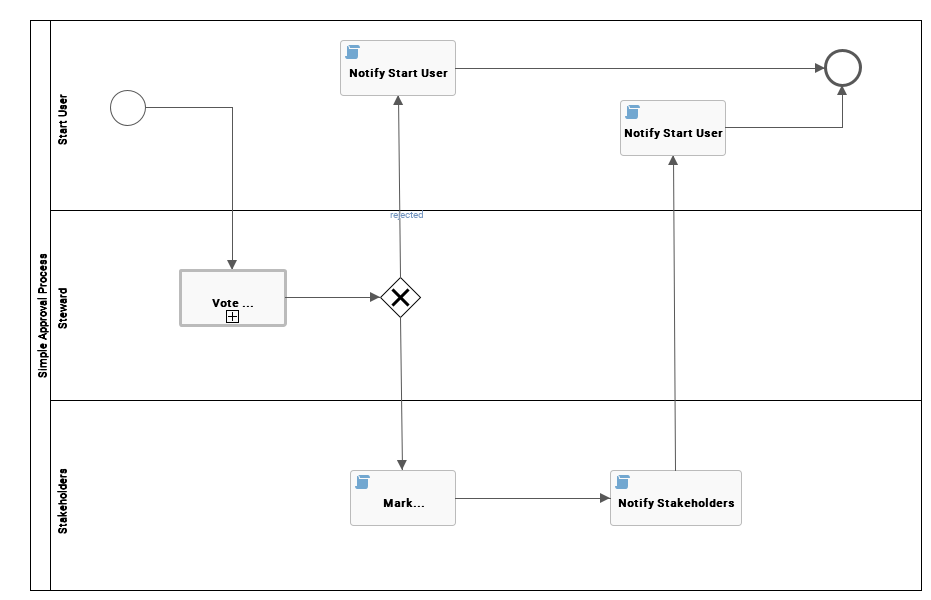 The Voting Sub-Process is a workflow that can be called by other workflows when users need to vote. It is used within other packaged workflows such as the Approval Process, the Simple Approval or the Issue Management workflow. You can use this sub-process in new custom workflows. The result is a true or false boolean that is provided to the parent workflow. |