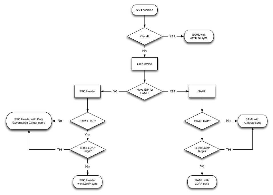 The following flow chart can help you decide which SSO mode to use. If you already know which mode is appropriate for your environment, just skip to the correct section in order to learn how to configure the relevant SSO mode.