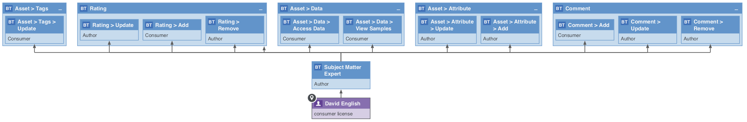 Warning Collibra does not actively enforce the correct license type. Users with a Consumer license can still perform actions that require Author permissions, though they will see a warning message.
