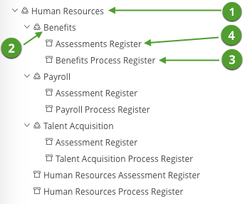 For example Payroll, Benefits and Talent Acquisition could be considered three subcommunities that are grouped by the line of business Human Resources. - One Process Register domain per community and subcommunity, for storing your Business Process assets.