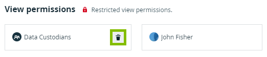 One view permission is deleted, so only the remaining users or user groups can see this resource and its children.