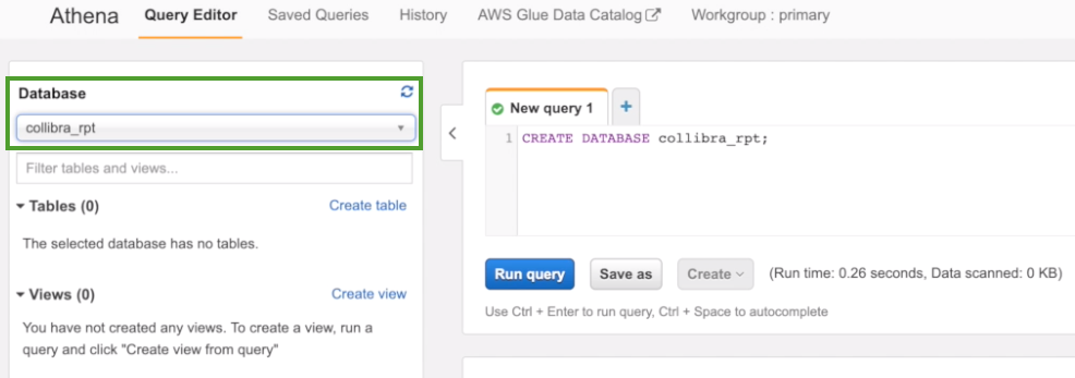 As shown in the following example image, we have created a database named "collibra_rpt".