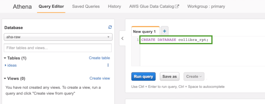 - In the Reporting Data Layer ZIP file you downloaded from Collibra Marketplace, drag and drop the first SQL file into a new query tab.