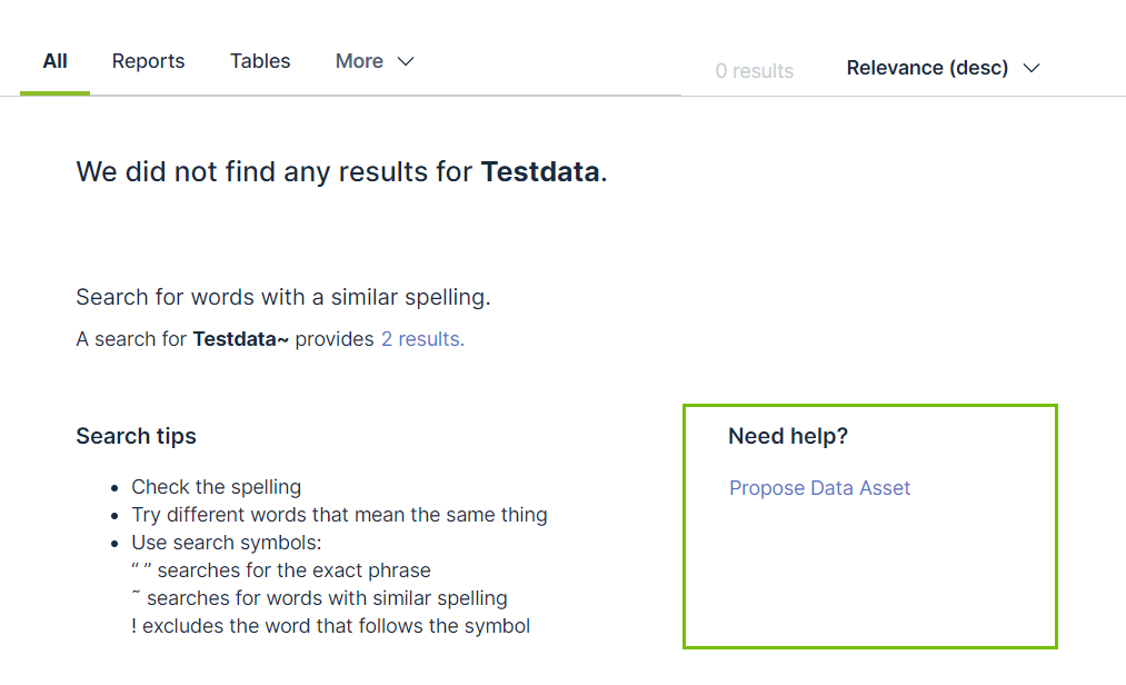 - The Propose new data set workflow in the No search results page.