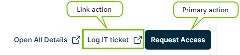 In the below example, Request Access is the primary action and Log IT ticket is the link action. You cannot customize the Open All Details action.