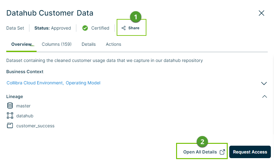 Open All Details This action allows data consumers to open the asset page of the asset.