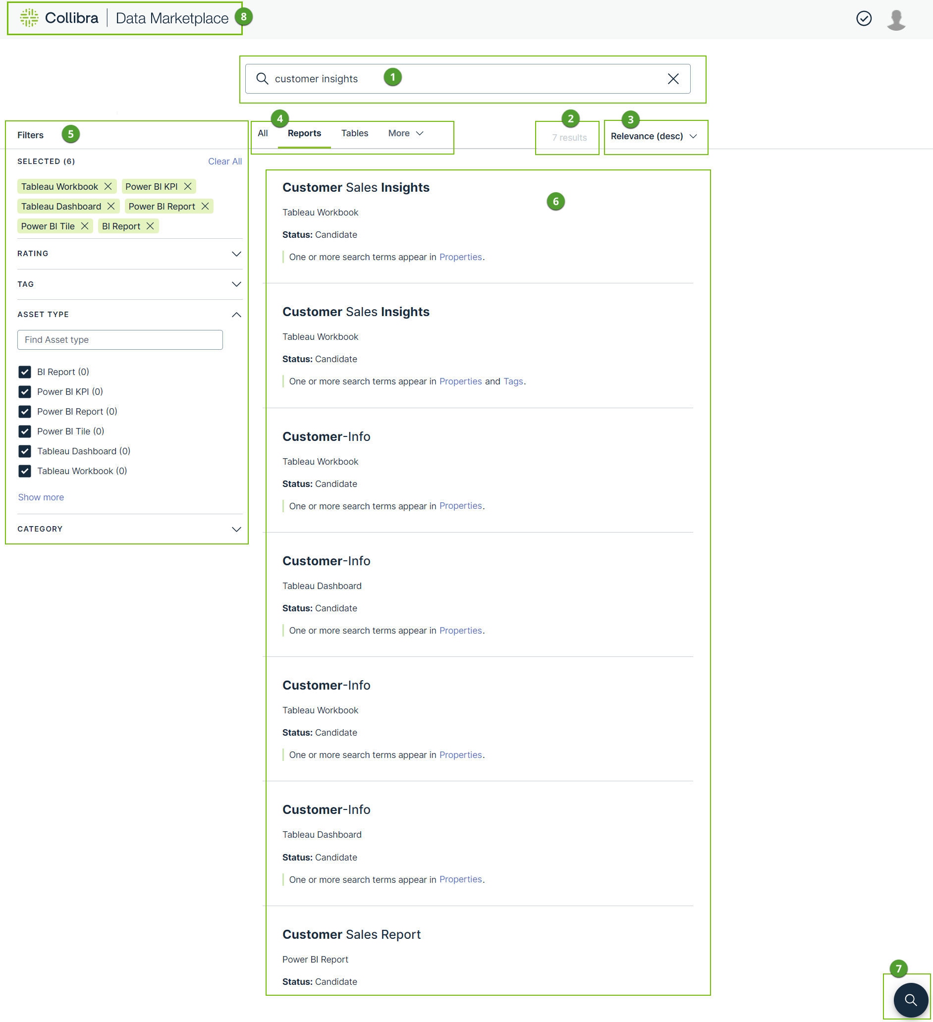 Back to landing page | This button brings you back to the Data Marketplace landing page. |