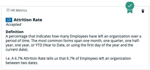 The green certified ribbon indicates that the KPI Attrition Rate is now certified.