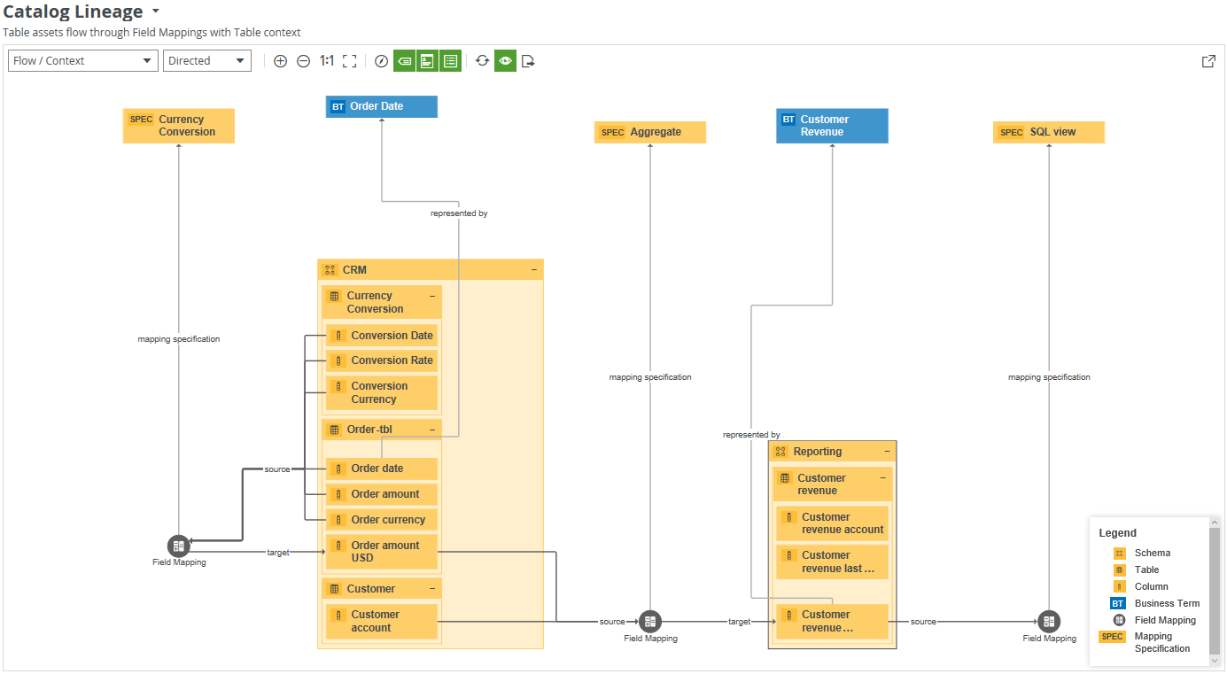 You can work with diagrams in the diagram editor, to determine how a diagram is shown. Collibra Data Intelligence Cloud comes with several packaged diagram views for common use cases. You can also create and share your own diagram views.