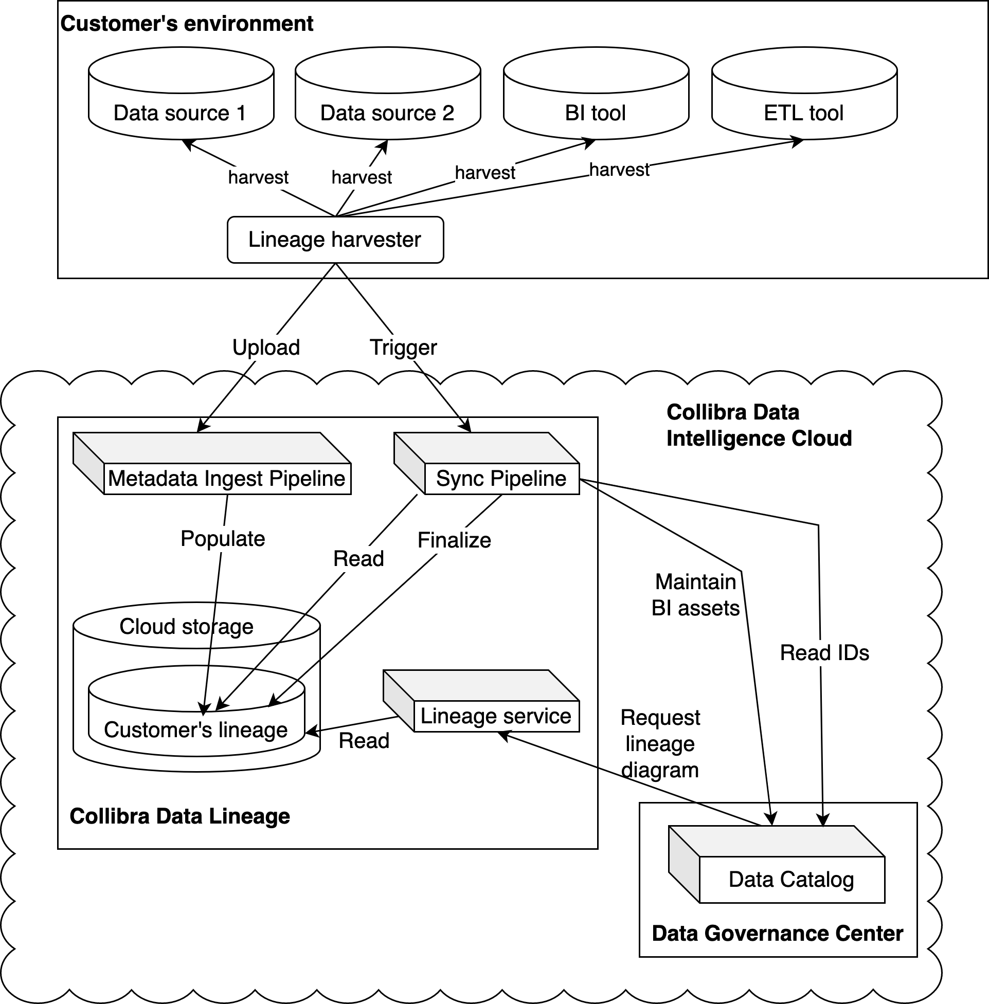 Note Technical lineage is created by a cloud-based service. You only connect to the cloud via an API call that is triggered by the lineage harvester.
