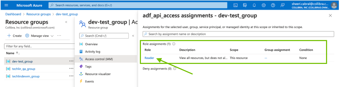 To gather the information needed for technical lineage, the resource group needs permission to read the APIs.