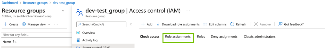 - If your resource group does not have the Reader role, click X in the upper-right corner, to close the Access assignments page.