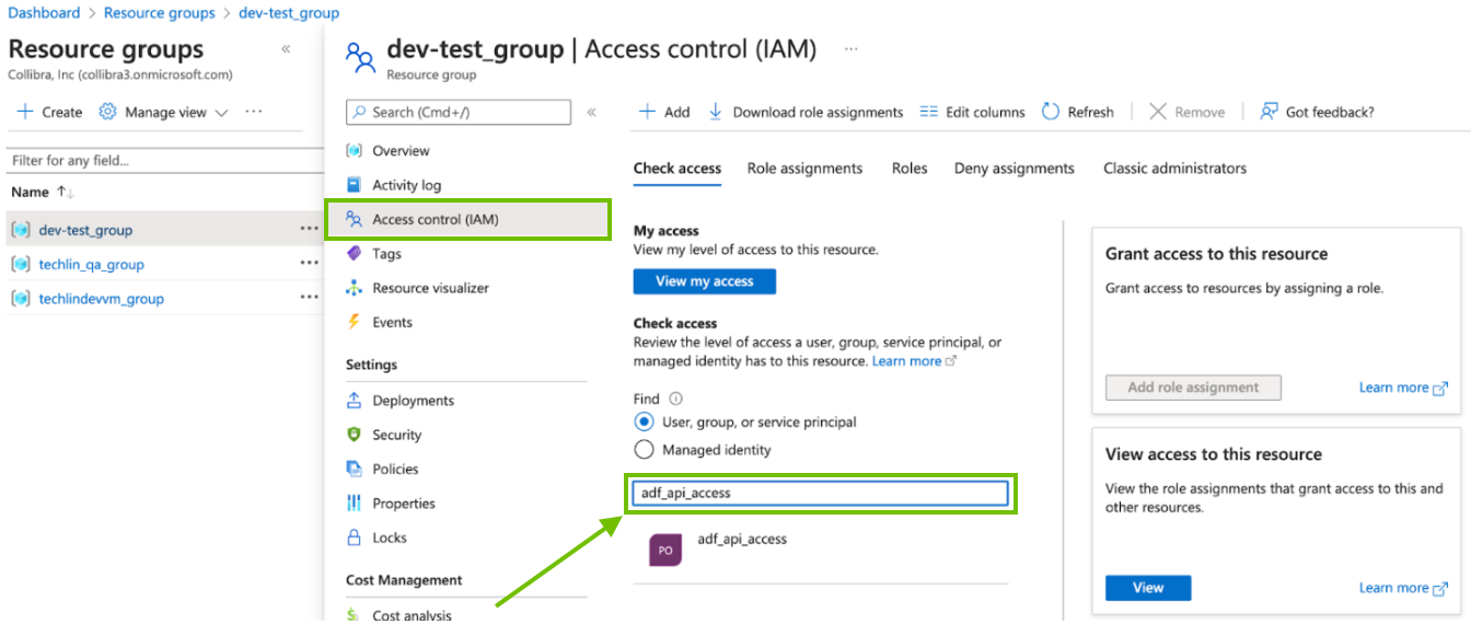 - Add your Azure Data Factory instance to a resource group