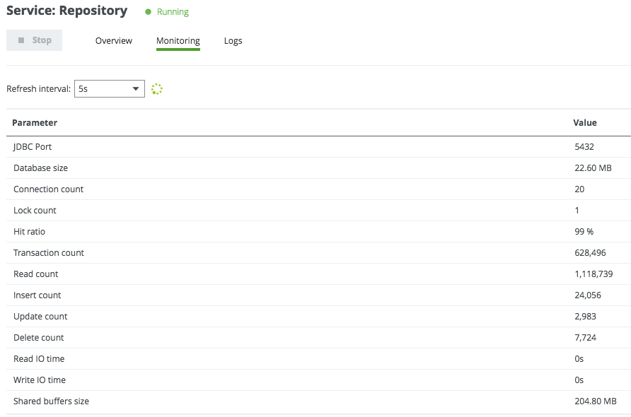 For the extended monitoring of your environments, you have to install the Monitoring service and define the interval between two scrapes. This service will store the following metrics in its database: