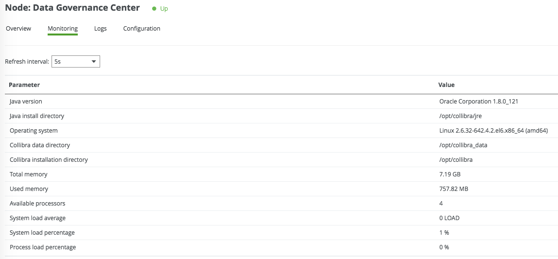 Use the Refresh interval drop-down menu to define how frequently you want the values refreshed. The default value is five seconds.