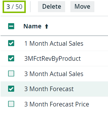 Tip In the table header, you can see how many of the available assets are selected.
