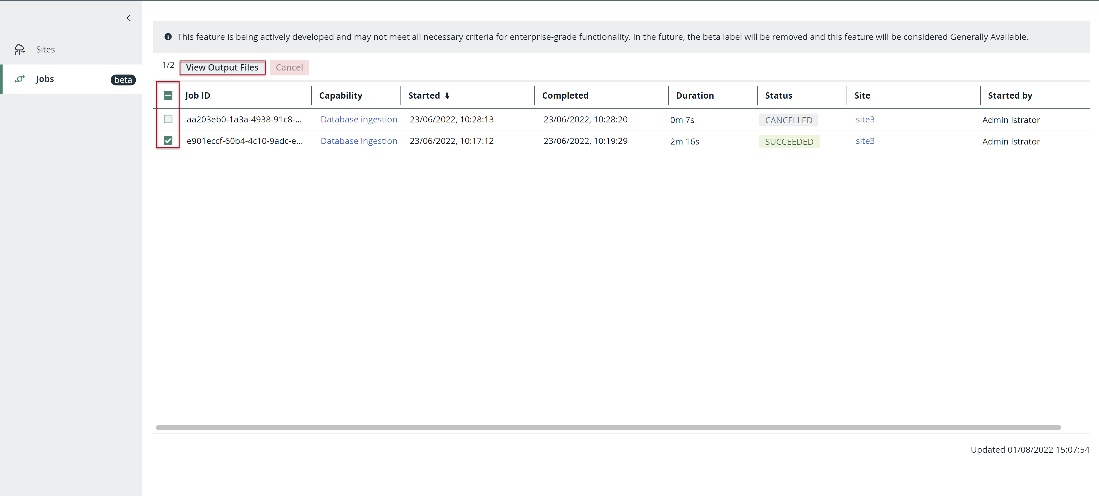 You can download the output files related to your Edge site jobs. These job files contain logs which can be used to troubleshoot a job that has failed. Only jobs which have been completed are available for download.