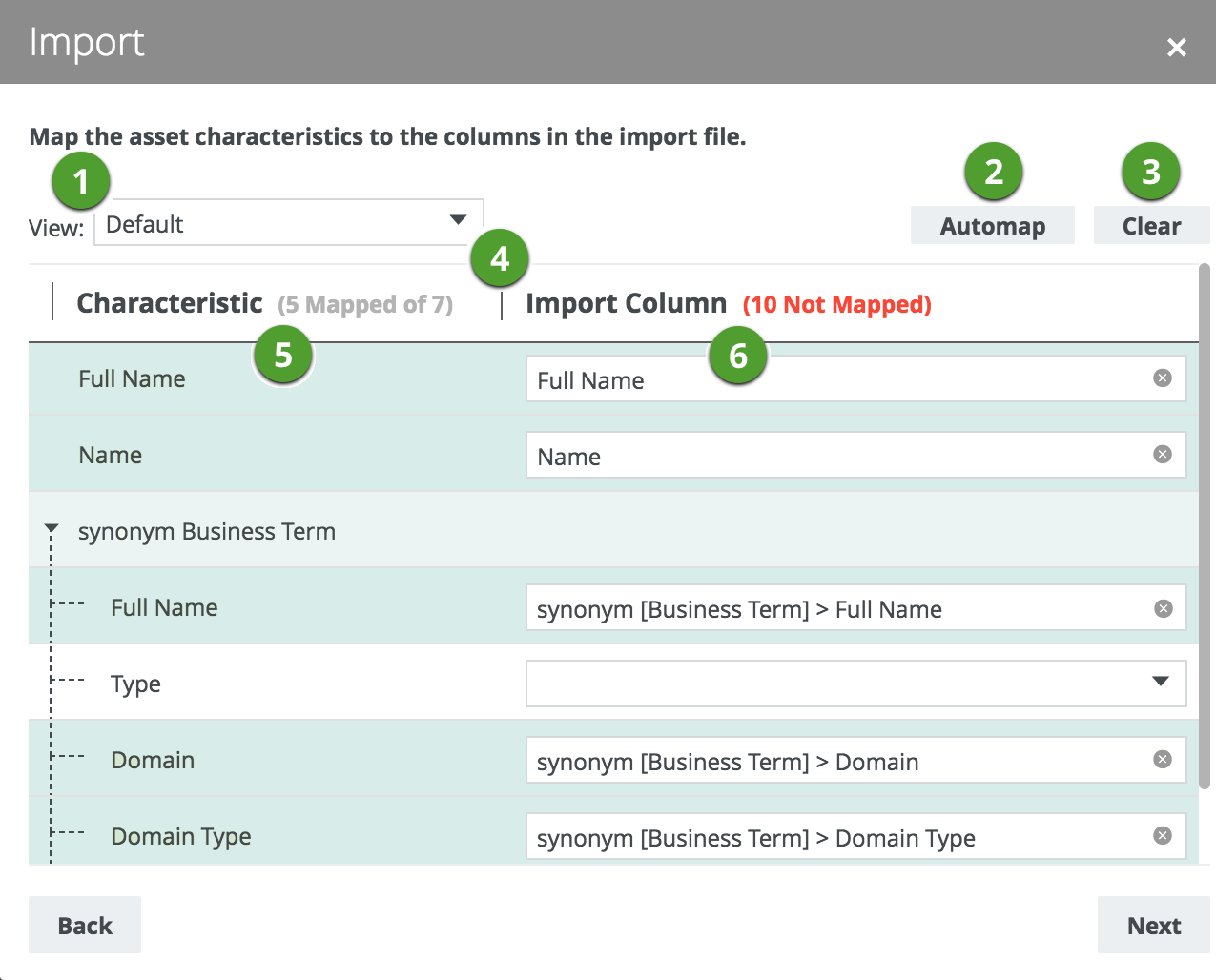 3. Click Automap to let Collibra map all visible columns automatically.
