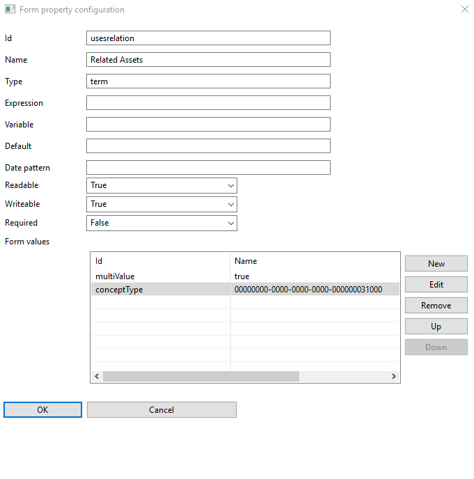 - The attribute conceptType set to specific asset type IDs, so it allows only assets of chosen types.