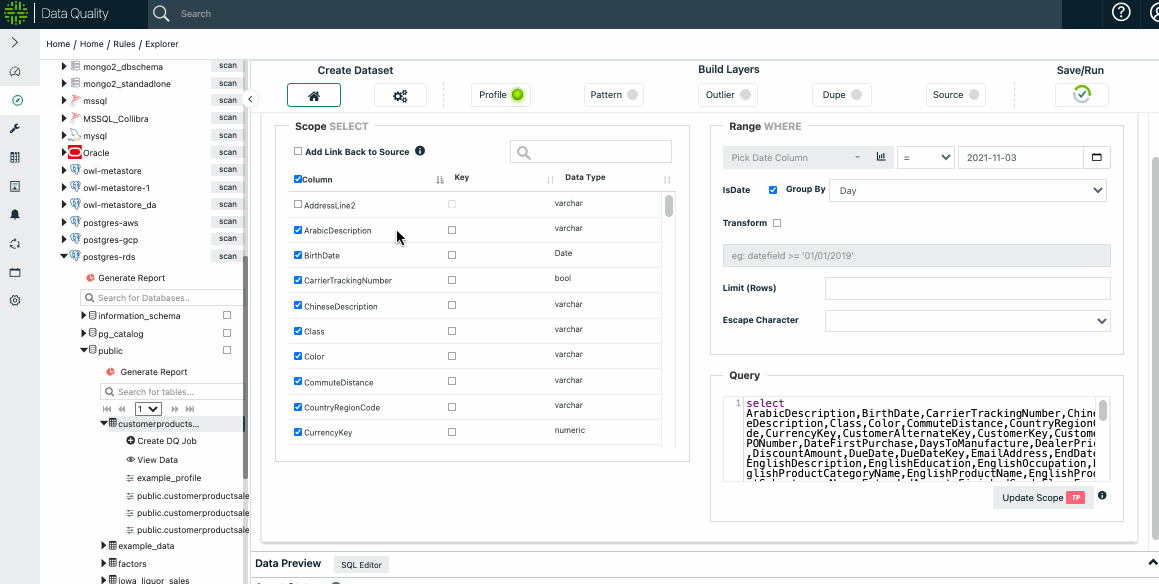 Collibra DQ creates a detailed profile of each dataset under management. This profile will later be used to both provide insight and automatically identify data quality issues.