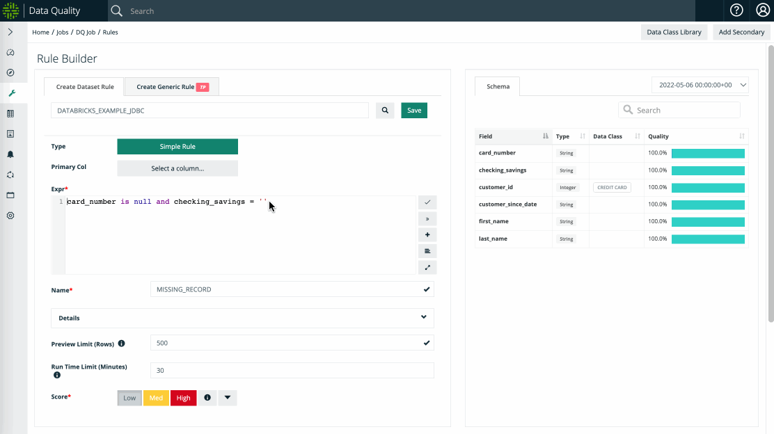 1. Create a new DQ Job and navigate to the Rule Builder page.