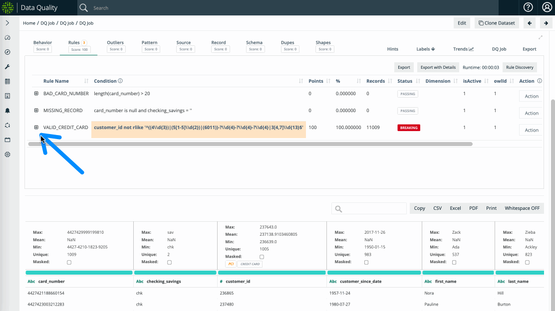 7. Run the DQ Job to execute the rules assigned to the dataset.