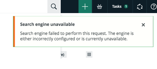 If, by chance, the Search service is incorrectly configured or becomes unavailable, a Search engine unavailable warning is shown, but Collibra will still continue to function.