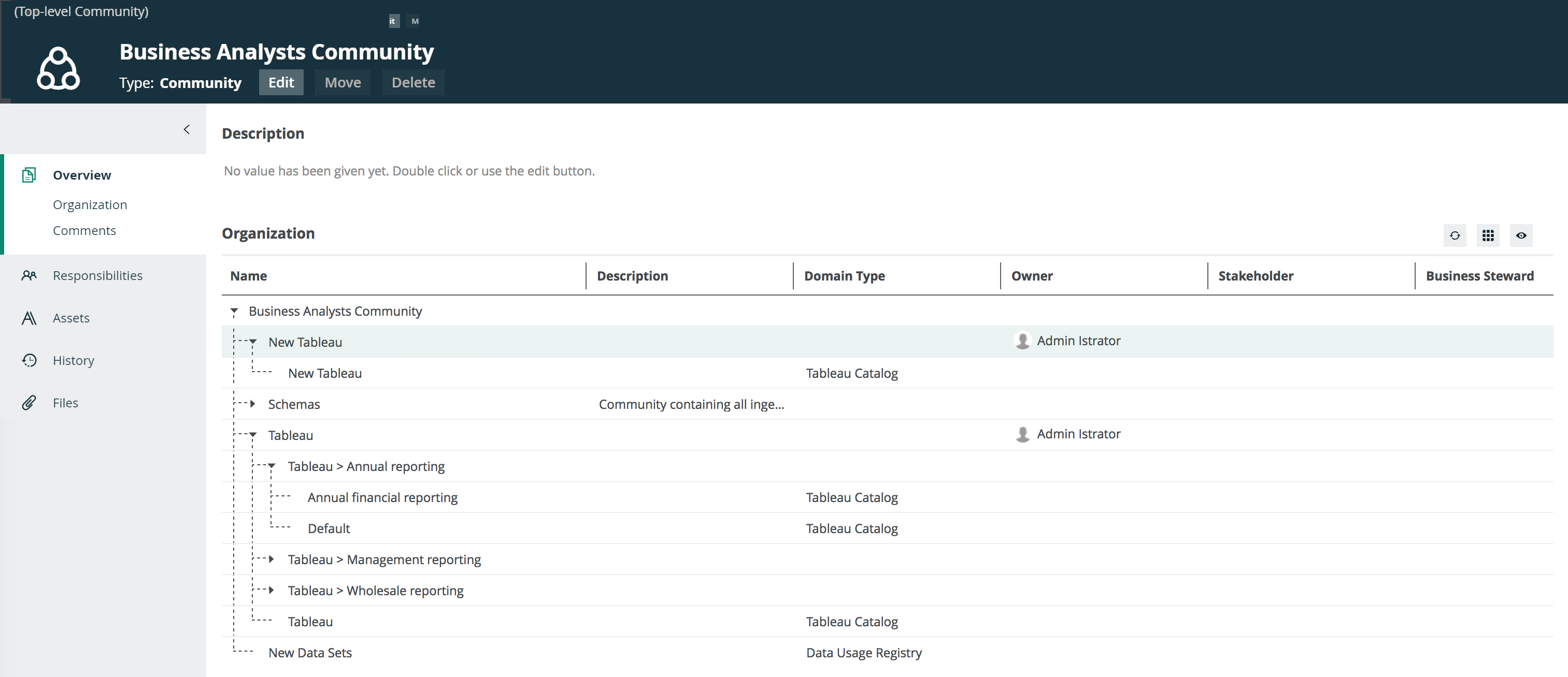 - For each Tableau project, a Tableau Catalog domain is created in the community.