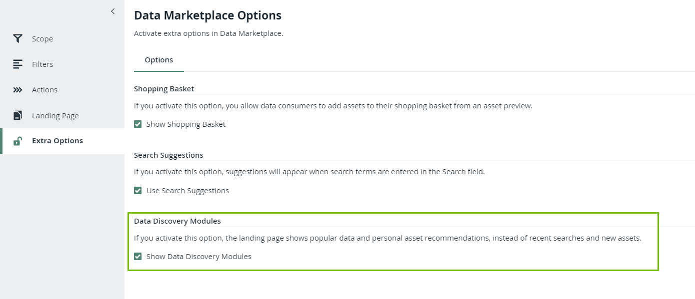 - In the Data Marketplace section, click Extra Options.