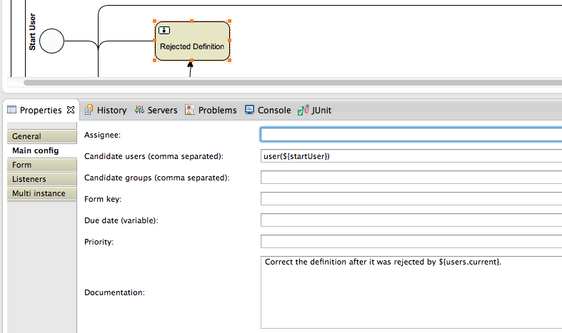 These user expressions provide an easy and versatile way to define which users are allowed to execute the task. - Documentation: This is the description of the task. It is displayed to the user to explain what he is expected to do.