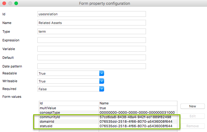 | conceptType | Determines the asset types of the values in the drop-down list. The Name field contains the ID of an asset type. The drop-down values are all of the type of the provided asset type ID or of its subtypes. |