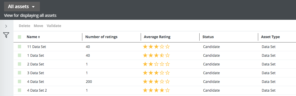 - Average rating: The average of all user ratings for each asset.
