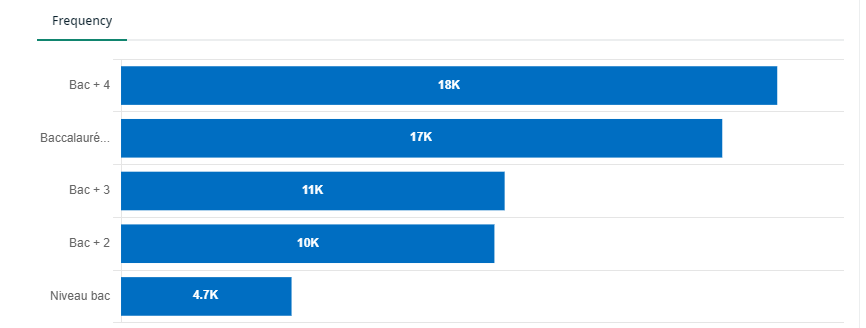 This chart is available if the data type is boolean, numerical or text, and is considered categorical (Categorical Data = true).