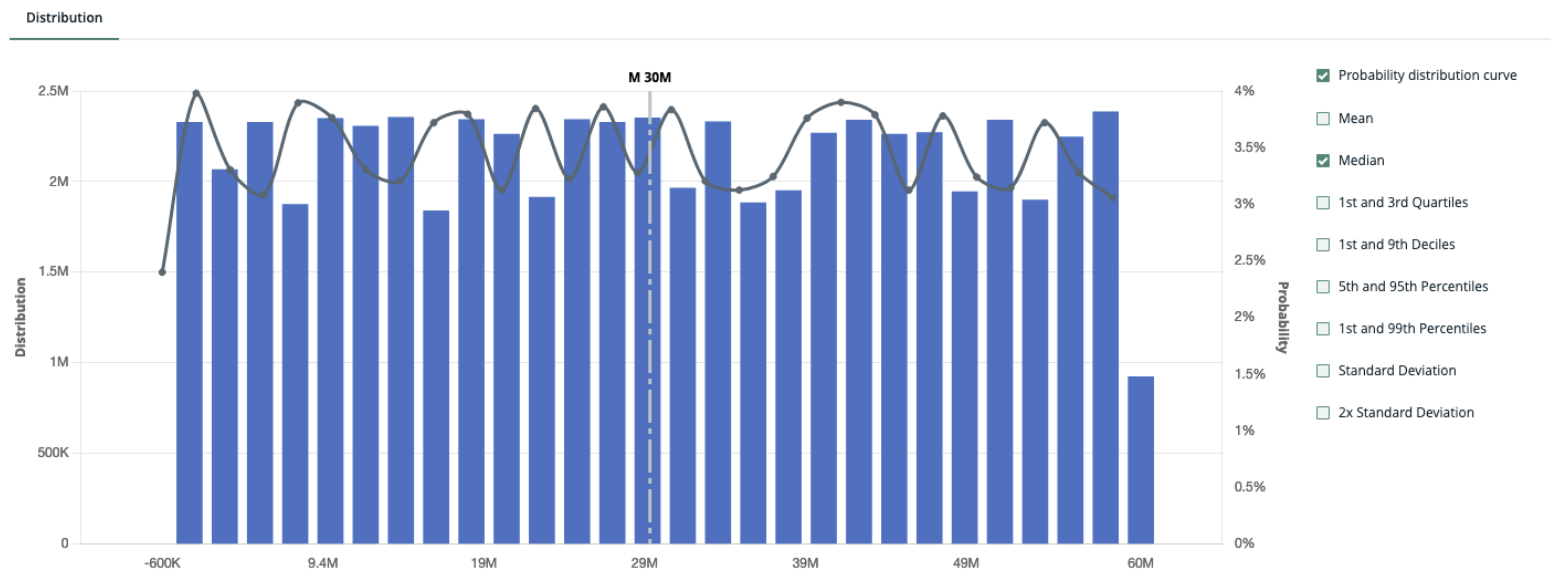 In this chart, you can receive extra information such as the mean, standard deviation and so on, by selecting the option at the right of the chart.