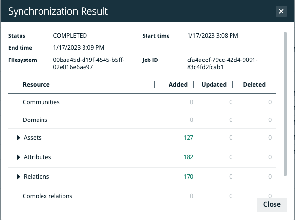 Tip The Job ID is useful when troubleshooting your synchronization process with Collibra Support.