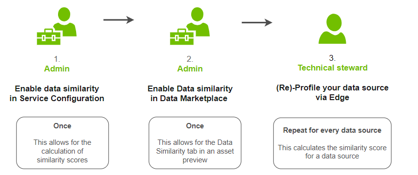 In the Service Configuration settings, enable the Calculate Data Similarity (Beta) profiling setting. Data similarity scores can be calculated when you profile a data source via Edge. |