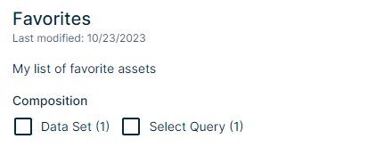 For a collection, you can see the assets in the collection, a collection description, when the collection was last updated and also the composition. The composition shows the asset types of the assets in the collection.
