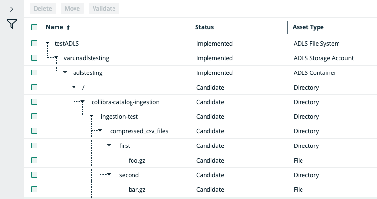 After you have synchronized the data, the integration of the Azure Data Lake Storage file system is completed, and the resulting assets are available in the domain that was specified in the crawler. By default, the assets get the Implemented status.