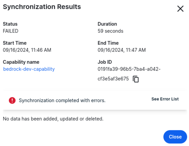 View the summary of a AWS Bedrock AI synchronization (beta)
